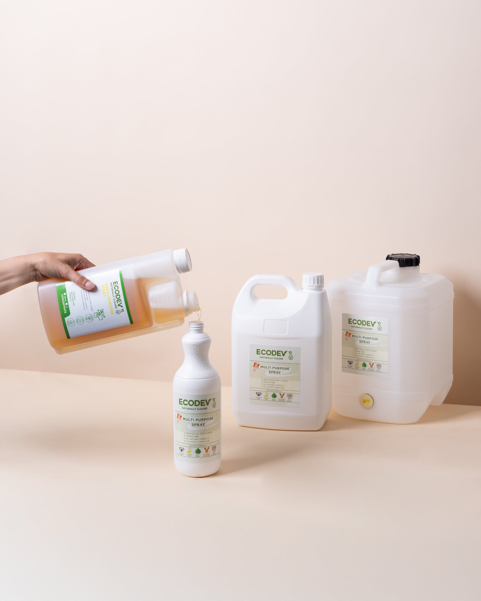 This is the best floor cleaning product that's cleans and sanitises my floors to perfection. It's great for my polished concrete floors because of its no PH. Doesn't turn my floors milky like other products do. Love the refillable measuring container the product comes in so I don't end up putting too much in. Thank you sincerely ecodev.