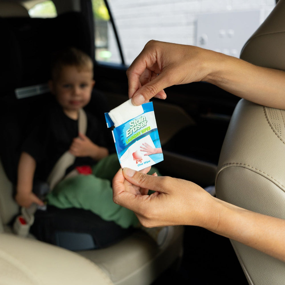 • Pocket-sized wipes you can keep in your bag, car, desk, or pram.